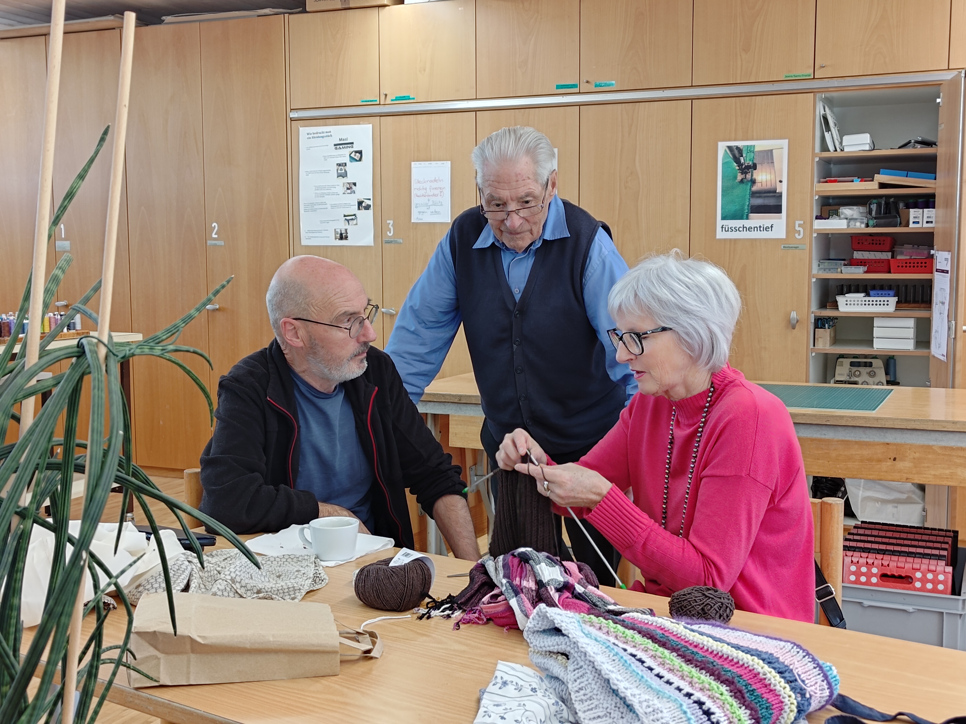 An der ersten Flickbar der Saison 24/25 war einiges los. Es wurde geschraubt, gehämmert, gelacht, gefräst, begutachtet und auch geflickt: Ein Stuhl erhielt eine neue Sitzfläche, eine Kaffeemaschine wurde fit gemacht, ein loses Staubsaugerrohr fixiert, zwei Einweck-Fehler erkannt und nach Ersatzteilen gesucht, mehrere Messer und Gartenscheren geschliffen, ein Trotti repariert und ein ein Staubsauger untersucht.